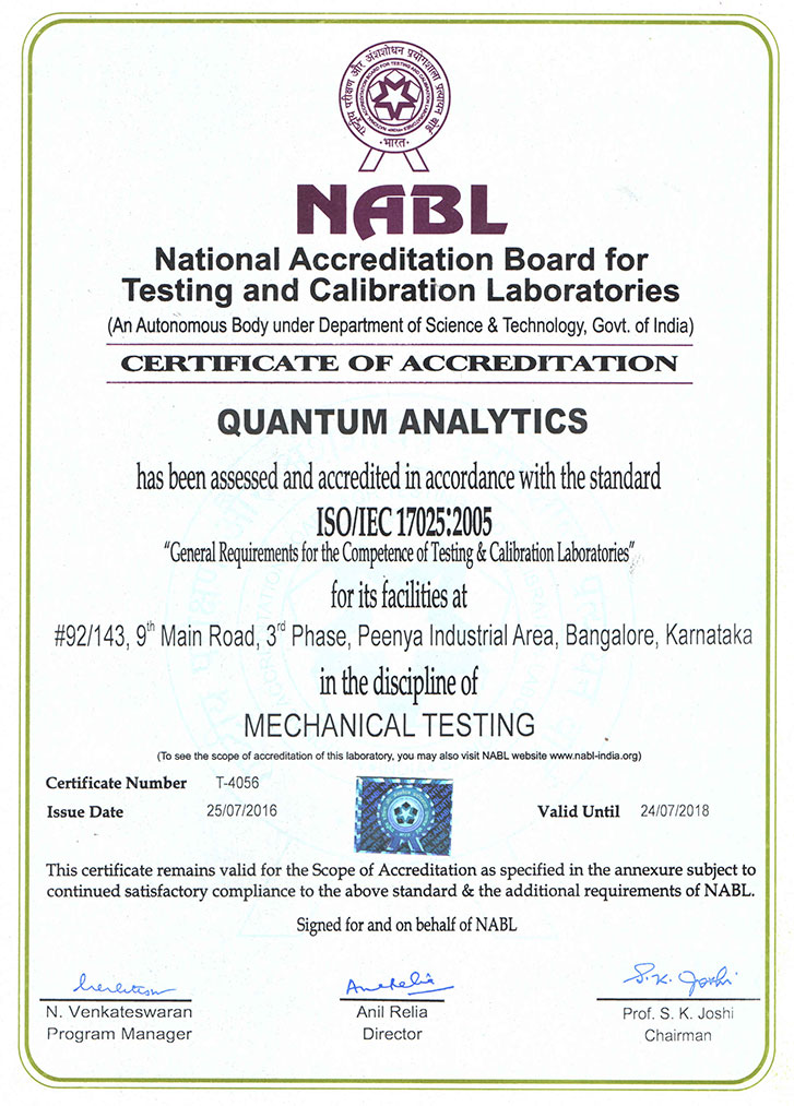 QUANTUM ANALYTICS  was established in the year 2014  as a Material testing facility for Metals